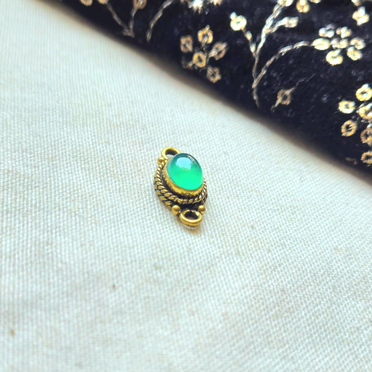 At the center sits a polished round cabochon stone that enhances the floral structure and adds a subtle elegance. The antique gold finish beautifully complements the organic design, making it suitable for both delicate and bold jewelry styles.