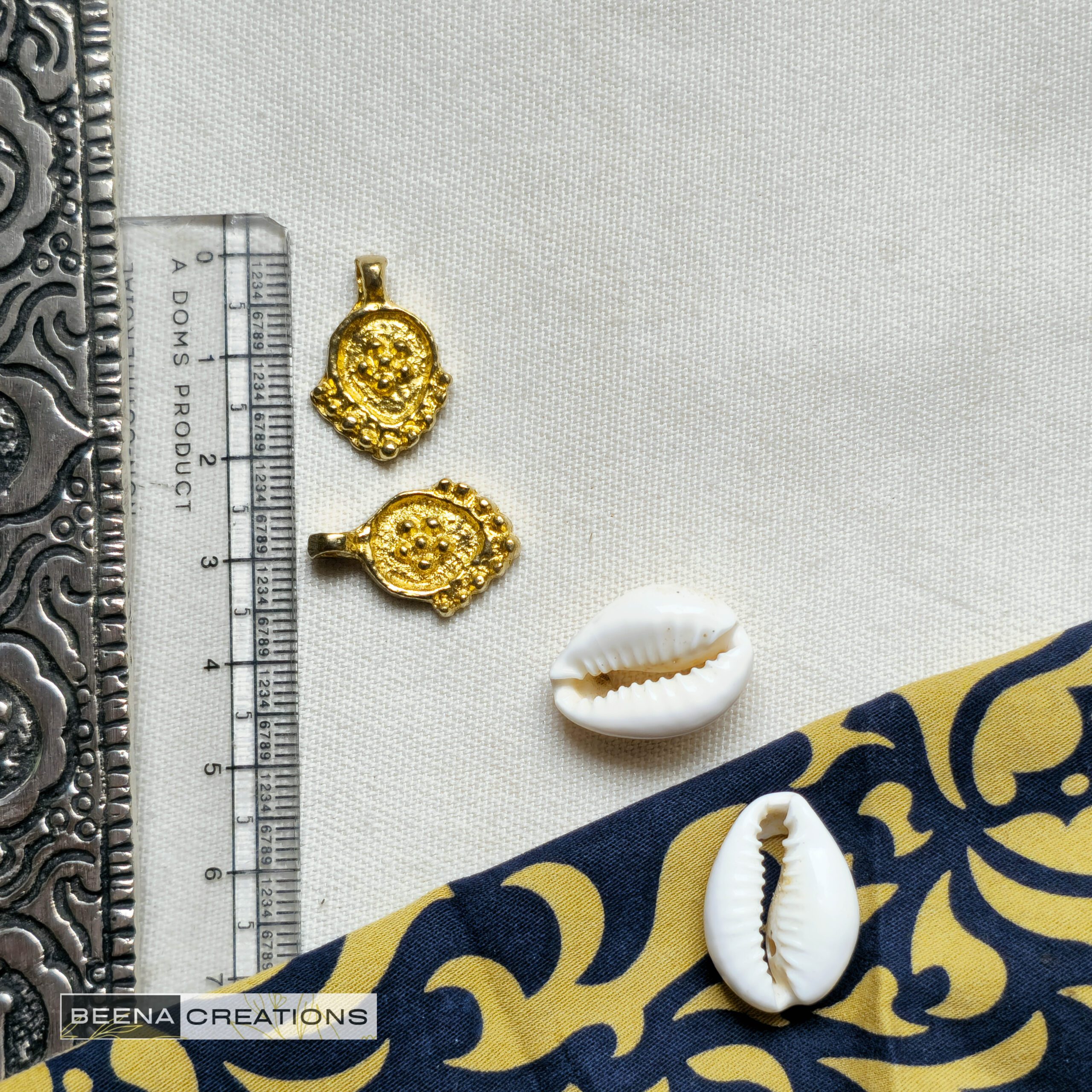 Add a touch of Indian heritage to your handmade jewelry with these mini traditional brass charms. Designed in an ornate ethnic style and finished in antique gold, they are perfect for macramé creations, festive earrings, temple jewelry, rakhi, or spiritual crafts. Their rounded, paisley-inspired form with beaded detailing makes them an elegant accent in any design.